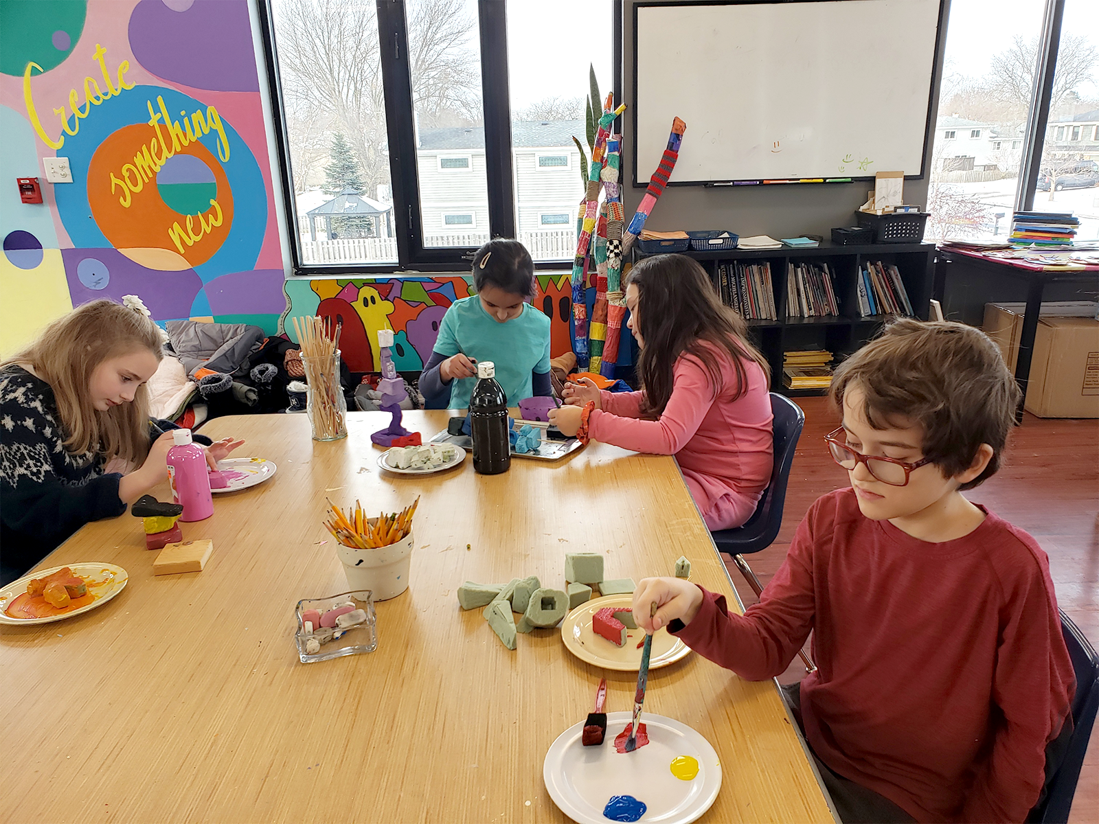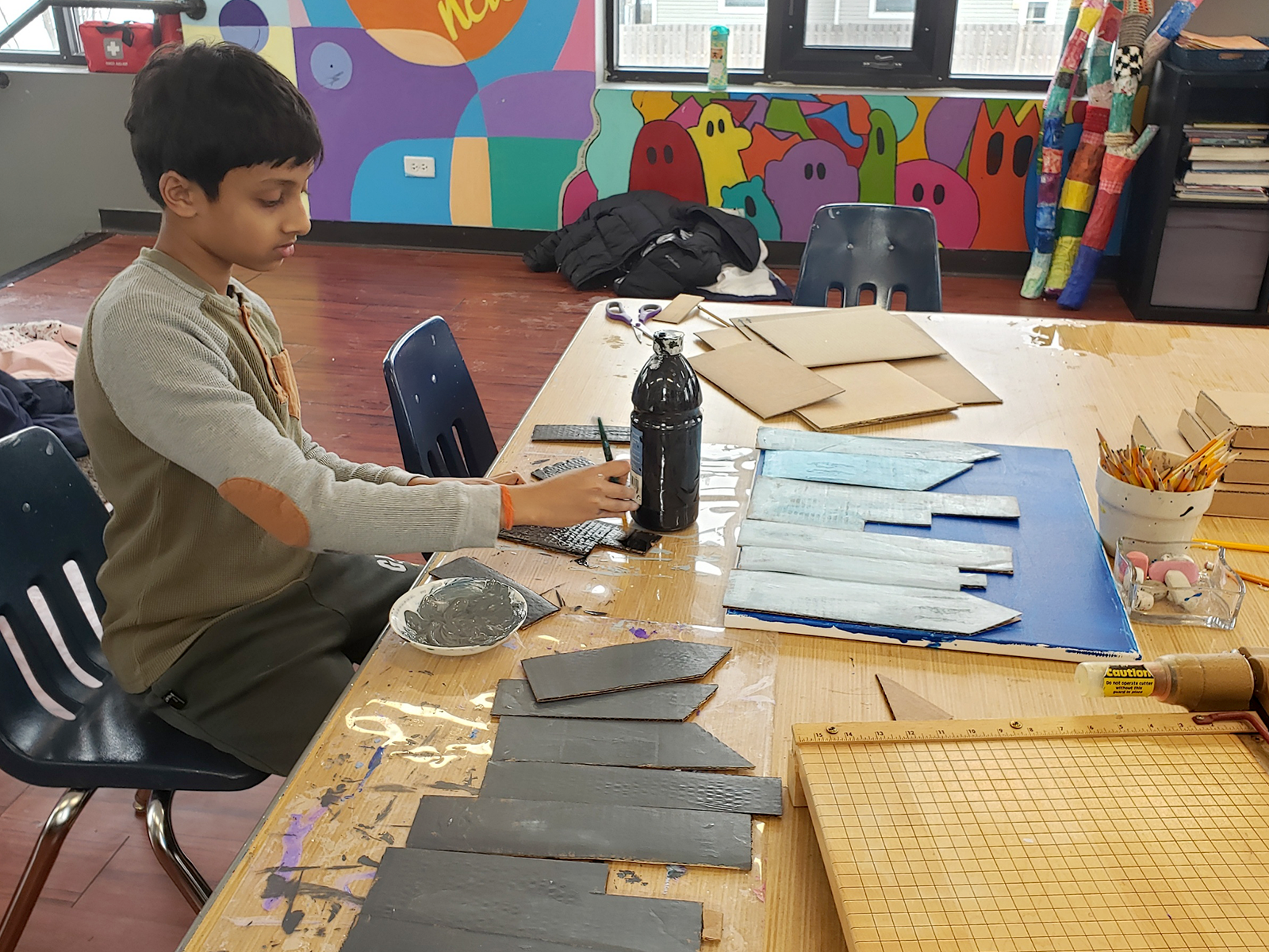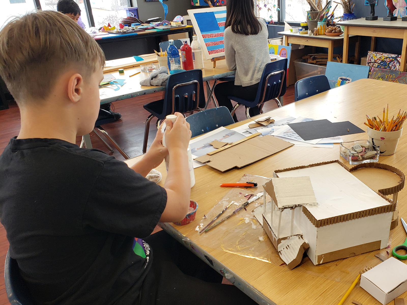 Some upper elementary students are preparing artwork for International Day on March 14. Inspired by North American culture, they are drawing from architecture, artists, landmarks, traditions, and everyday life across the region. Students are also creating a collaborative piece to be auctioned at International Day. Inspired by Vincent van Gogh’s Almond Blossoms, the canvas was divided into small squares so each child could carefully paint a section, symbolizing hope and new life.
