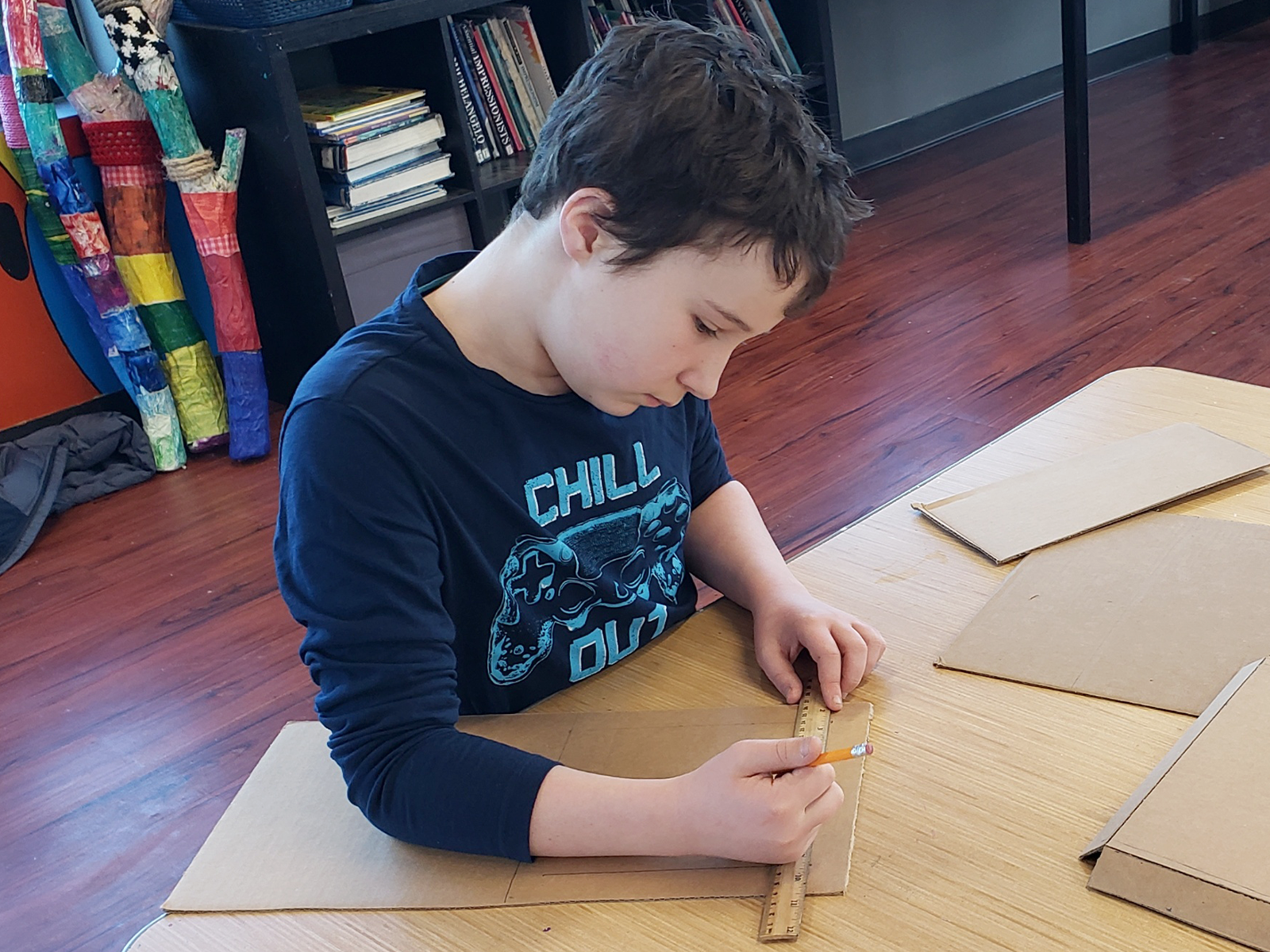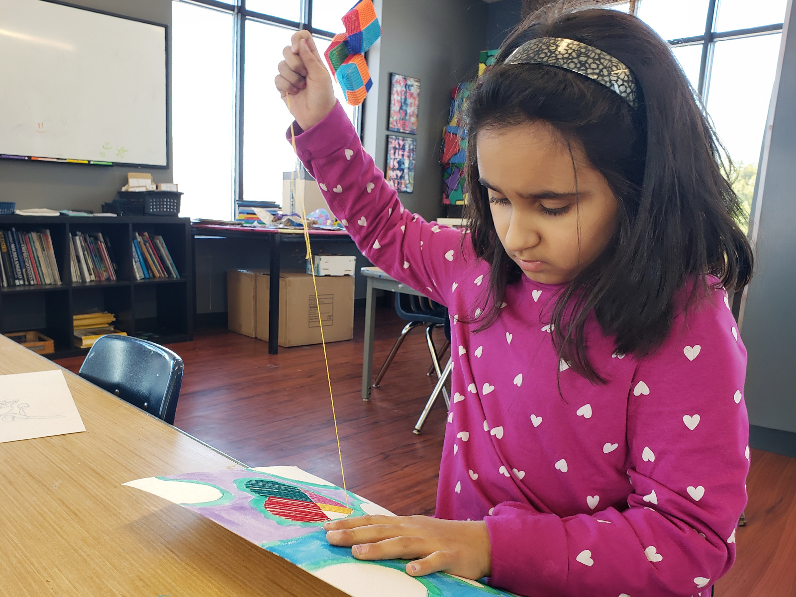 Elementary students also explored sculpture using garden foam, wire, stockings, and wood. Each material asked for a different approach, encouraging patience, problem solving, and care as imaginative forms slowly took shape.