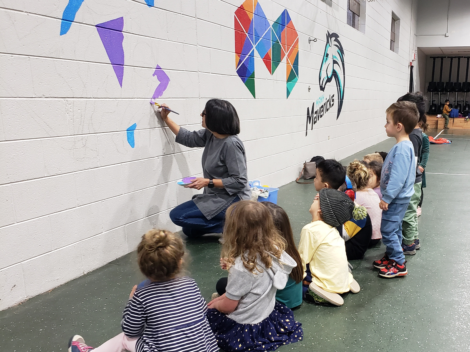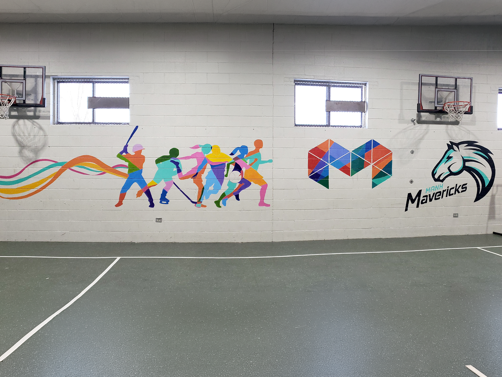In the gym, Ms. Meeta’s new murals celebrate movement, sports, and activity across our athletics programs, brightening the space and highlighting the importance of health and wellbeing for every child.